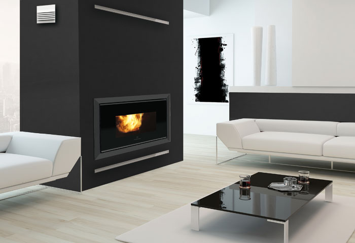Este nuevo modelo de estufa de pellet viene preparado para insertar en un hueco de chimenea existente, o bien puede venir equipado con un caballete autoregulable para realizar una chimenea nueva, y después realizar un revestimiento personalizado.