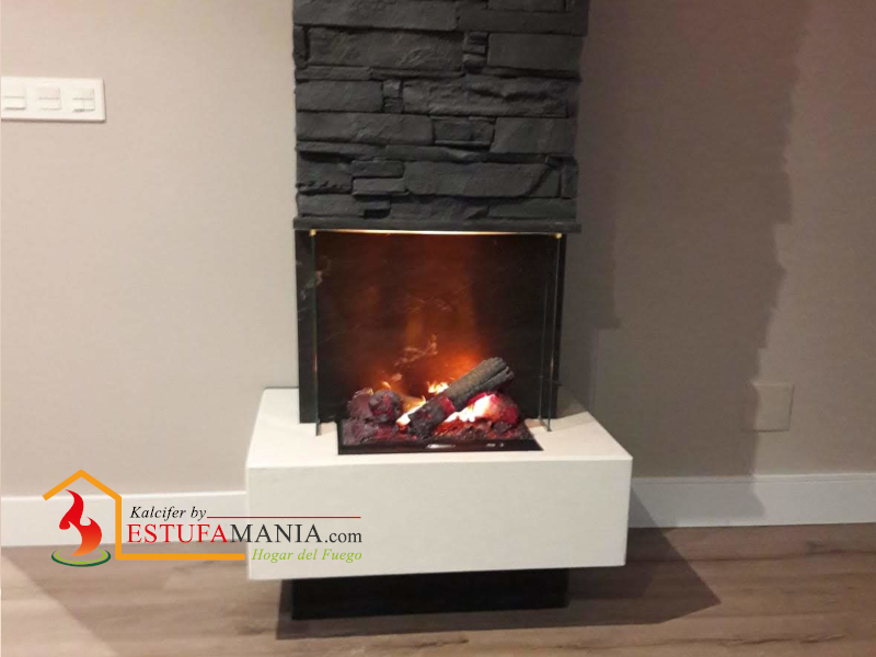 Para la chimenea realizamos una peana en dos bloques donde el inferior en color negro es más pequeño, para posibilitar la entrada de aire inferior.